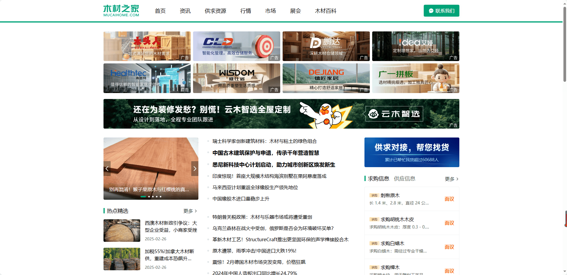 正在快速成长的建建、家具和家居行业中,木材做为焦点原材料,其质量、价钱及市场动态一直牵动着从业者的神经。若何高效获取行业资讯、精准对接优良资本,成为浩繁企业及消费者关心的核心。正在这一布景下,木材之家网坐应运而生,凭仗其专业的内容生态取智能化办事,敏捷成为国内木材行业的权势巨子消息枢纽。