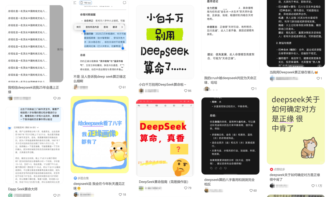 肖庆的履历并非个例。浩繁年轻人借帮DeepSeek解读八字、采办转运物件,还会用它预测考编上岸几率、将来伴侣类型、正在他们看来,DeepSeek不只供给了运势预测,更是一条将混沌现实简化为“参数”的认知捷径。虽然看似是对复杂现实的简单化处置,但却给人一种掌控命运的错觉。正在这场全平易近参取的“形而上学狂欢”中,DeepSeek不只完成了对保守形而上学的“祛魅”取“返魅”,更深刻地了后现代社会年轻人的窘境。又难以现实世界的取苍茫。刚好成为了他们正在取感性之间的最佳缓冲地带。