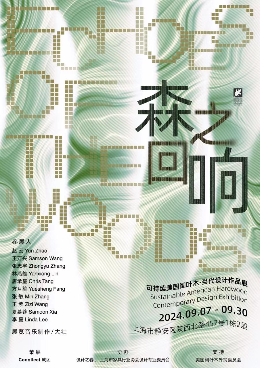 由美国阔叶木外销委员会(AHEC)鼎力支持,“Cooollect成团”主办策划,“设计之春”与上海市家具行业协会设计专业委员会协办的“森之回响EchoesoftheWoods”——可持续美国阔叶木当代设计作品展即将于9月7日在沪预展,并于9月12日隆重开幕。此次作品展将集中展示10位中国年轻设计师及艺术家应用可持续的美国阔叶木所做的创意设计,让大众更直观、更真实地感受天然木材与设计艺术有机融合的独特魅力。作为展览期间的重要活动,以可持续木材与设计为主题的研讨会也将于9月13日精彩呈现,届时,室内设计师、产品设计师、艺术家、制作商以及木材协会代表等多领域的专家将齐集一堂,畅谈绿色环保的美国阔叶木以及其出众的设计潜力。